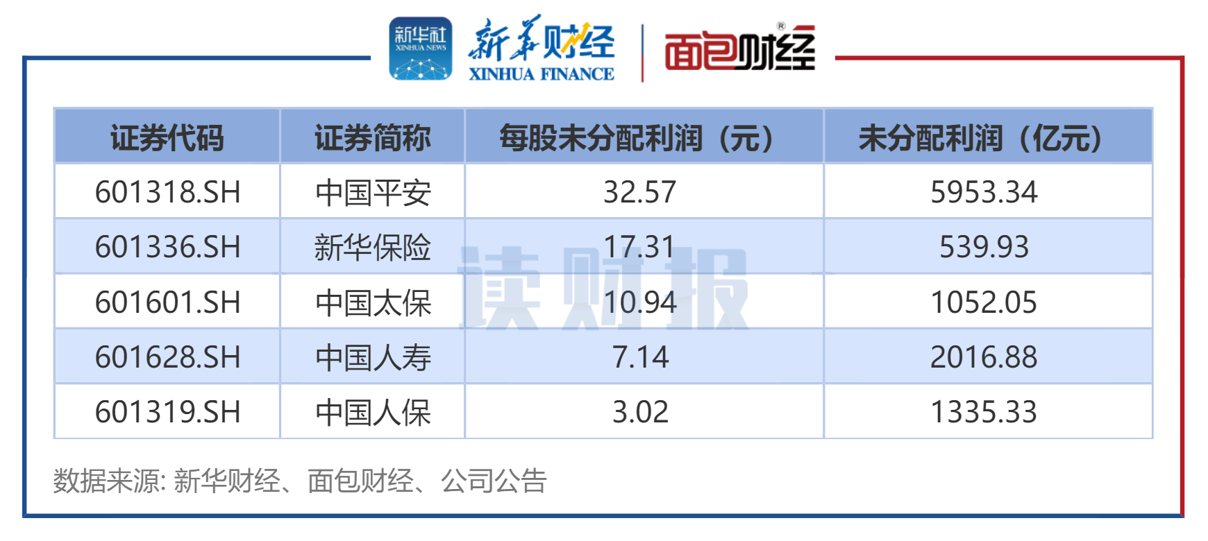 具体来看,中国平安未分配利润较高,接近6000亿元,中国人寿位列第二,为2016.88亿元,新华保险未分配利润较低,为539.93亿元。