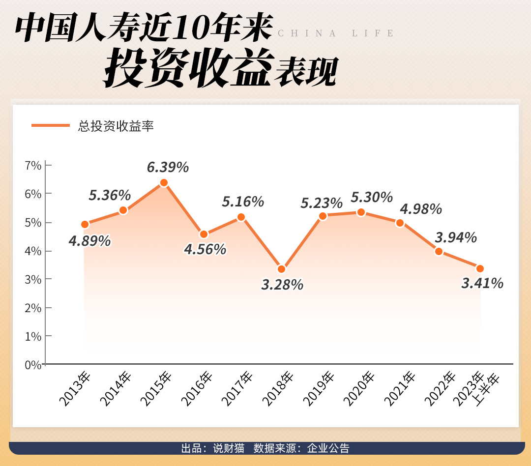 在2023年上半年,国寿的总投资收益率都还有3.41%。在A股五大保险公司中,3.41%的水平也处于末端。