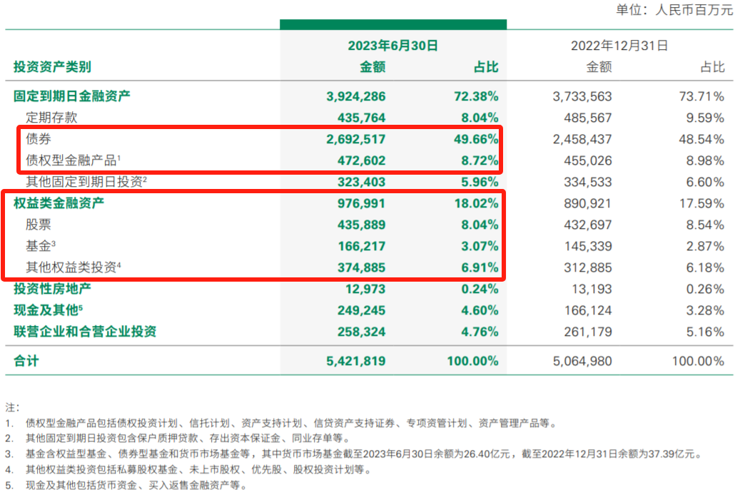 以2023年半年报披露的数据来看,当时中国人寿54218亿元的投资资产中: