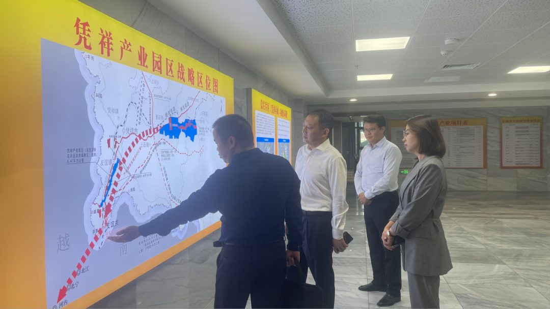 调研组一行先后到中国(广西)自由贸易试验区崇左片区管理委员会、广西凭祥产业园区管理委员会(筹)、凭祥友谊关口岸、凭祥市国际贸易开发集团有限公司等地,实地了解园区开发建设和货物进出口、产业发展、跨境金融等情况。调研组一行表示,要摸清崇左片区跨境优势所在,整合集团金融优势,加强探索金融创新业务,大力发展好跨境金融,为企业发展提供更坚实的金融保障,助力崇左片区金融高质量发展贡献国寿力量。