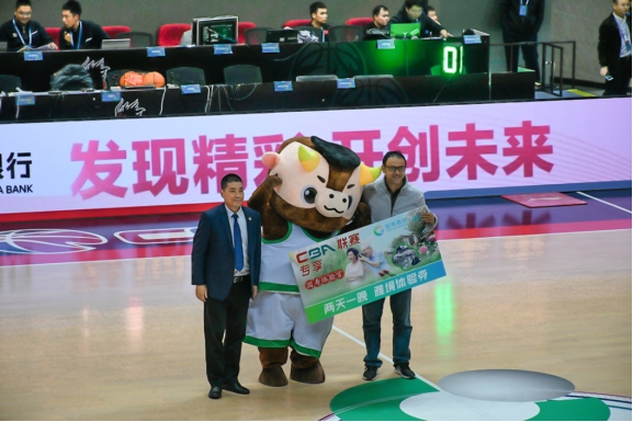 不负所托”“要投就投中国人寿”等品牌口号,陪伴球员们在赛场上的每一次热血拼搏与逐梦前行。中场时刻,中国人寿镇江市分公司主要负责人周云飞到场致辞,并向观众席抛送定制公仔,10位幸运球迷获得了中国人寿送出的品牌篮球。