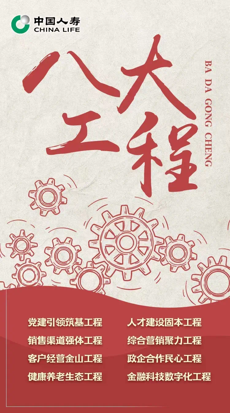 在此基础上,中国人寿寿险公司继续“赶考”,又在2022年底推出了“八大工程”,即以“党建引领筑基工程”为统领,以“人才建设固本工程”为支撑,以“销售渠道强体工程”“综合营销聚力工程”“客户经营金山工程”“政企合作民心工程”“健康养老生态工程”为主体,以“金融科技数字化工程”为基础。根据“八大工程”的部署,公司在接下来的深化改革中,将深入实施基础再造和难点攻关,积极瞄准新客群、新模式、新能力,全面升级公司发展动能,加快质量变革、效率变革、动力变革。