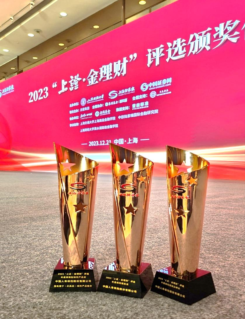 近日,由上海证券报主办的2023“金理财”评选结果公布,中国人寿集团旗下寿险公司荣获年度保险保障品牌奖、年度保险服务奖、年度保障型保险产品奖三项重磅大奖。