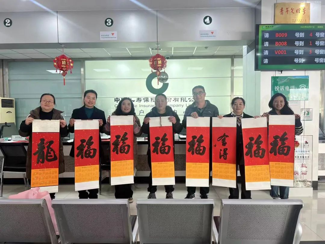 春节将至,为弘扬中华优良传统文化,营造欢乐祥和的节日氛围,2月1日,中国人寿楚雄分公司邀请楚雄州书法家协会会员在客户服务中心柜面开展“新春送福”柜面增值服务活动,为新春贺岁,为国寿客户送祝福。