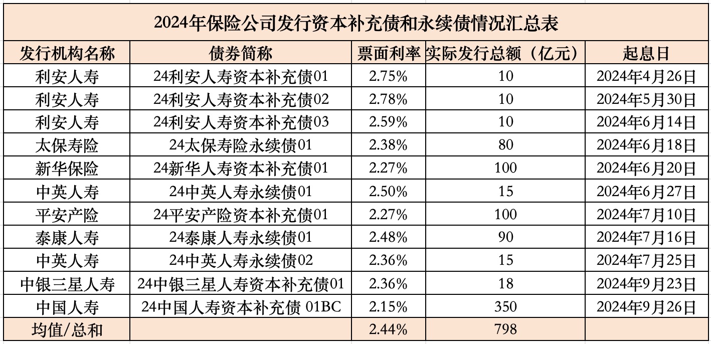资本补充债平均票面利率跌破2.5%,利安人寿最高