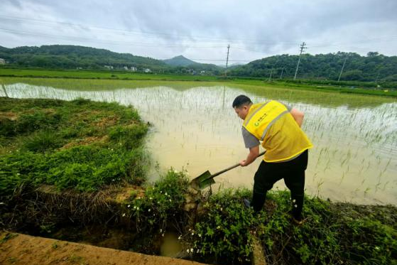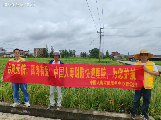 广东分公司下乡上门向农户普及讲解农业生产防灾减灾知识,先后前往当地某水田种植区域协助农户进行及时排水和修复田基,到玉米种植区域走访时协助农户及时扶正倒伏的玉米,防范自然灾害影响,减轻农户损失。