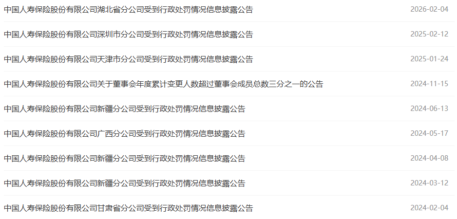 中国人寿公告回应称,公司高度重视行政处罚指出的相关问题,及时组织责任单位进行问题排查整改,后续将继续深入加强合规管理工作,强化合规教育培训,持续提高分支机构依法合规经营能力。