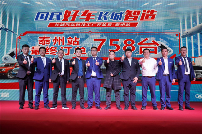 团购会上,泰州智慧工厂负责人、长城汽车领导为用户分享旗下智能科技成果,并针对用户青睐的明星车型,宣布优惠丰厚的团购权益政策,大力度放送长城对用户的服务诚意。最终,泰州工厂当日收获订单758台,喜人成绩印证了广大用户对长城汽车的支持与青睐。