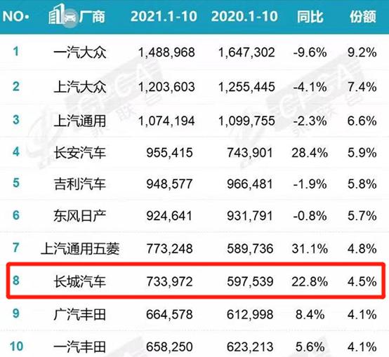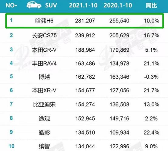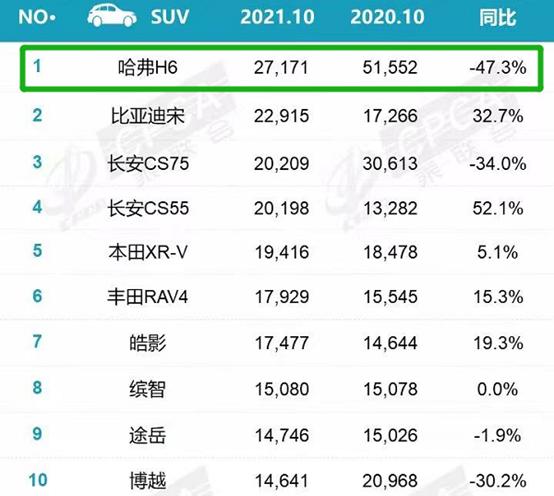 事实上,长城汽车销量并非想象中的惨淡,据乘联会数据披露,2021年1-10月销量累计733972辆,同比增长22.8%。加上风骏、长城炮的销量,怎么也90万辆开外了。而哈弗H6同比增长10%,1-10月累计销售281207辆,账面数据还是比较喜人的,但是再看看同比的10月,销量跌幅达47.3%,销量滑铁卢的确让魏董事长寝食难安,掌门人也是如坐针毡呀,哈弗H6的前景堪忧了,尤其是今年开始,月销5万的不复存在了,同比往年的第四季度,月销7万8万不在话下,H6神车开始不那么神话了,问题何在耐人寻味。