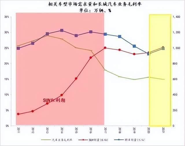 这就让这家没什么“背景”的地方民企赢得了会赚钱的名声。简单说来,长城汽车的高毛利主要因为在企业成长初期执行了“正确的选型策略”,从少有人问津的“皮卡”,到放弃轿车项目后专注SUV车型。