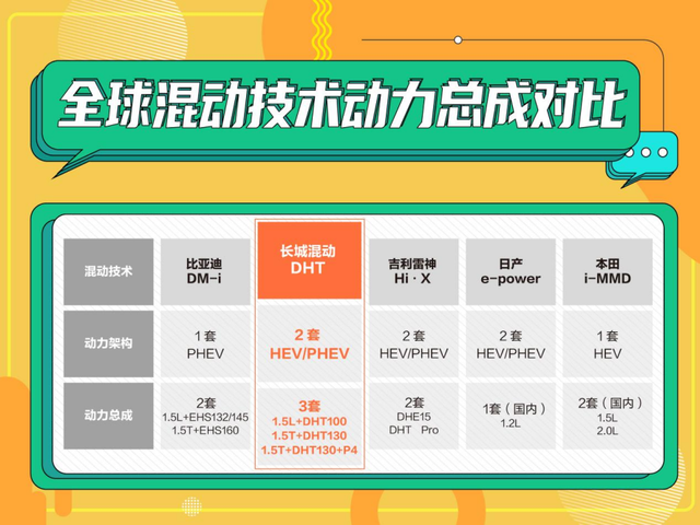 反观柠檬混动DHT,作为长城汽车自研的混动系统,代表了混动技术的最高水准。首先就是柠檬混动DHT适配车型广,它涵盖HEV、PHEV两种动力形式,以及1.5L+DHT115、1.5T+DHT130、 1.5T+DHT130+P4三种动力总成,灵活匹配A0-D级不同级别车型,满足了多元化的需求。