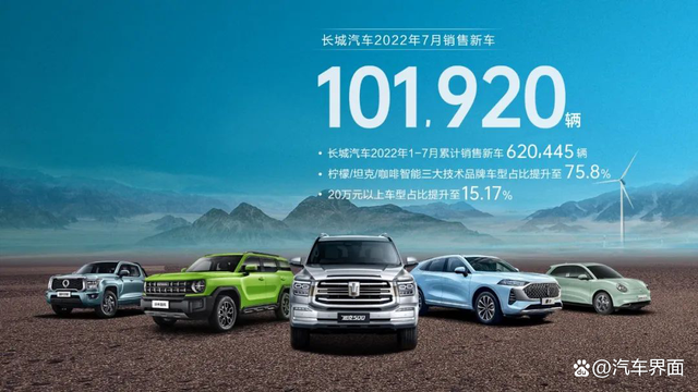从企业层面来看,一时的成绩当然不能作为决胜未来的砝码,只有建立起长期、可持续的发展能力,才能在应对任何变革时刻都能游刃有余。长城汽车7月的销量数据就很好的体现出了这一点,首先总体销量仍在10万+的水平之上,旗下五大品牌也都保持了正向增长,超过了市场预期。但更为关键的是,长城汽车一直在提升自己的品牌力,走高端路线,在7月的产品占比中,20万以上的车型已经超过15%,得益于坦克、魏牌这类高价值品牌的带动,长城汽车上攻势头越发强劲。