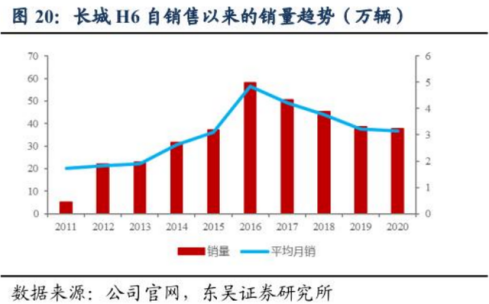 流量不会长期聚焦一点,市场也不会一直钟爱一款产品,自2016年后整个哈弗系列的销量明显下降,作为拳头产品的哈弗H6也没能逆转销量颓势,虽然长期领跑SUV销量榜,但是销量却以肉眼可见的速度缩水。