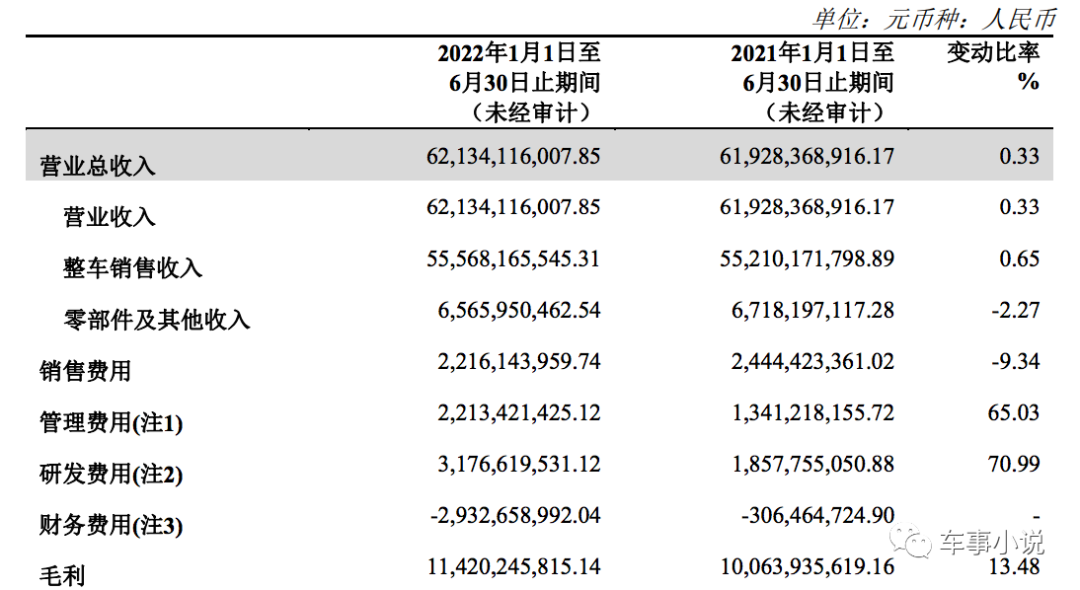 据长城汽车这份上半年业绩报显示,三费方面,上半年销售费用支出为22.16亿元,同比减少9.34%;管理费用支出为22.13亿元,同比增长65.03%;研发费用支出为31.77亿元,同比增长70.99%。
