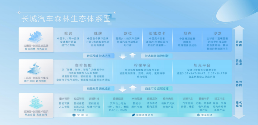 同时,新技术的革新与应用,为长城汽车旗下众多品牌及产品提供着源源不断的驱动力,为整体产业链的持续创新提供底层支持。