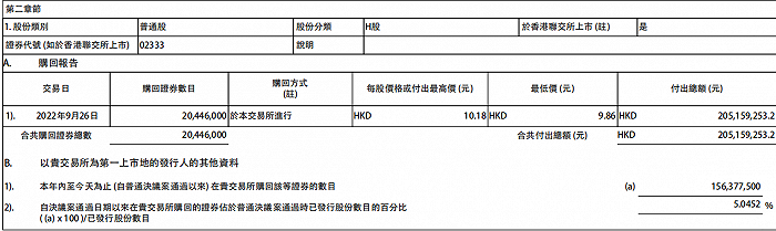 长城汽车9月26日在港交所发布公告,当日回购2044.6万股公司H股股份,耗资约2.05亿港元。