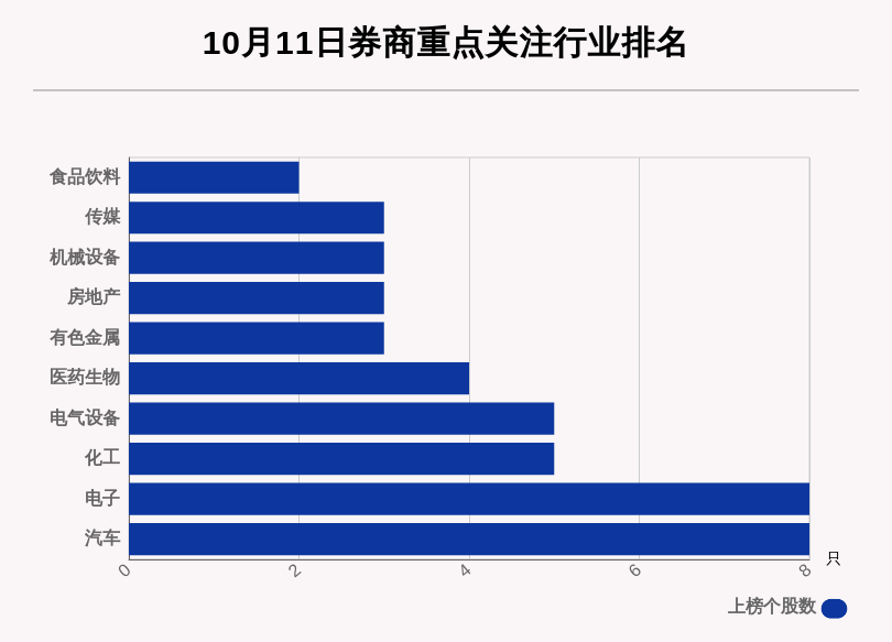 从券商对行业的关注度来看,券商关注个股数居前的行业分别是汽车、电子、化工。