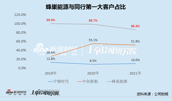 也就是说,蜂巢能源9成左右的收入来源于第一大客户,即大股东关联方,这一比例也远高于宁德时代、中创新航等同行。
