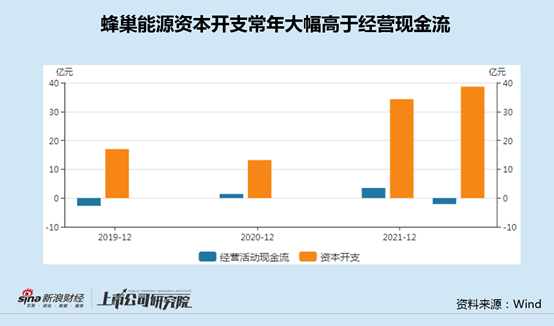 高额的研发投入只是一个方面,实际上,近几年来,蜂巢能源各项资本开支远超同期经营活动现金流,公司长期处于入不敷出的状态。