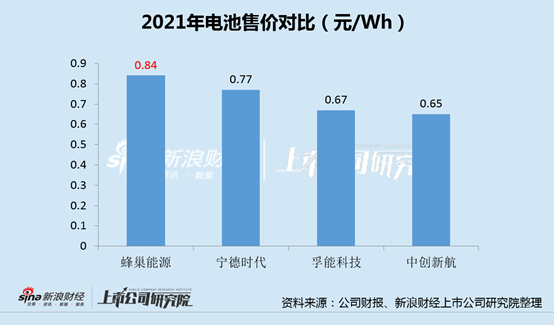 根据招股书,2021年,蜂巢能源锂电池平均售价为0.84元/Wh,而同期宁德时代为0.77元/Wh,孚能科技、中创新航等其它电池企业更低,不足0.7元/Wh。可以说,蜂巢能源电池卖的“明显偏贵”。