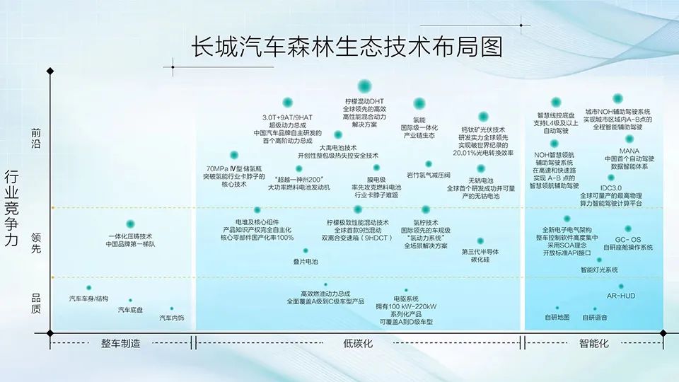 这种行为,更多像是“用堵的模式来治水”,而对比来看,长城汽车所做的则是系统工程。整个企业做出组织架构革新、各单元协同作战,形成了横跨动力电池、氢能、智能座舱、操作系统、智能驾驶、第三代半导体芯片等的持续创新底层支持。