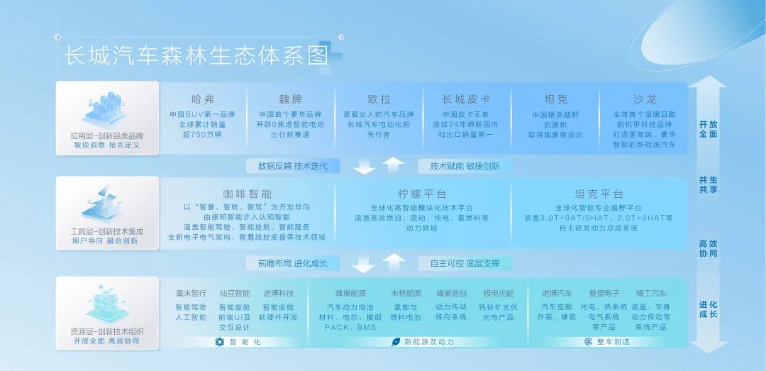 长城汽车的森林生态,从本质上看也是如此,高效协同是一个显著的特征,当然,支撑这一切的底层逻辑是超强的自主创新能力。