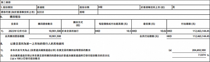 长城汽车:12月15日以1.12亿港元回购1090.15万股公司股份