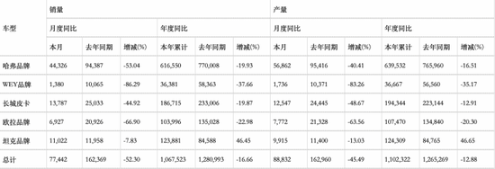 同比下滑超过50%,哈弗、欧拉、魏牌同比均腰斩,魏牌更惨到单月仅仅千余辆的月销量。