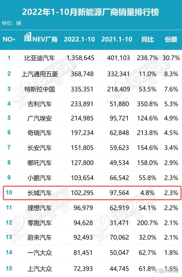 长城的下滑,与国内新能源汽车在过去一年的高速增长与抢食相关。长城汽车也在转型做新能源汽车,只不过,转型有点慢了。