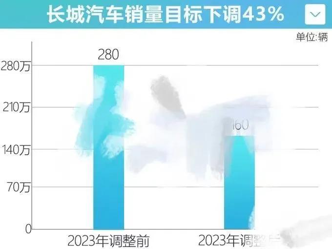 然而,一切来得快去得也快。仅仅过来一年有余,面对2022年销量达成率仅为56.19%,不足考核目标的六层,长城汽车不得不大幅下调了2023年销量和净利润目标,变更为2023年汽车销量不低于160万辆、净利润不低于60亿元,下调幅度接近一半。