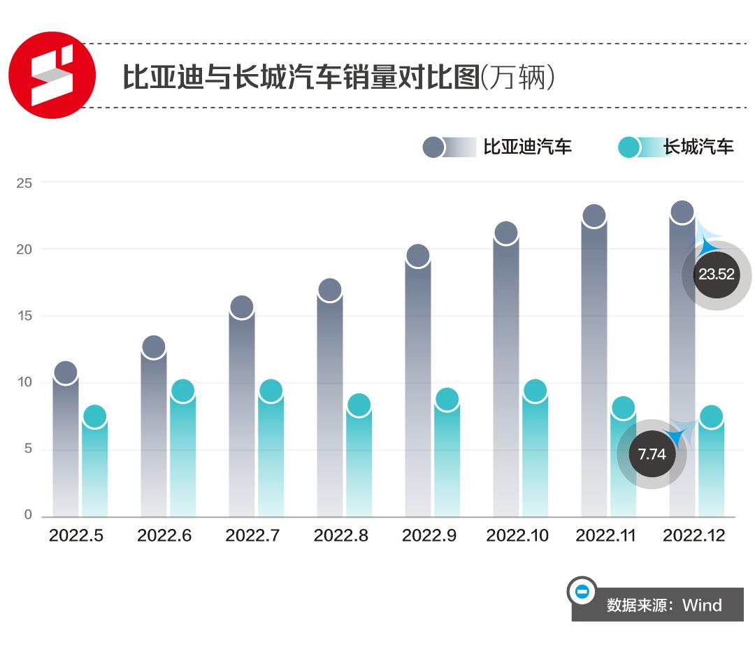 吉利汽车2022年实现销量143.30万辆,同比增长8%;奇瑞集团2022年销量123.27万辆,同比增长28.2%;比亚迪更猛,实现销量近187万辆,同比增长152.5%。