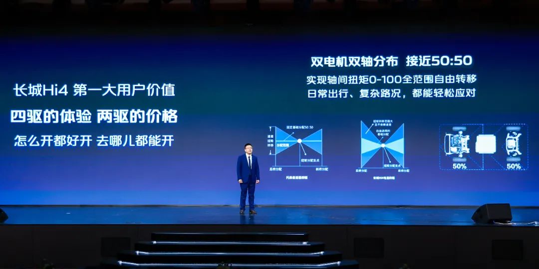长城汽车技术中心副总经理,刘宝上台对智能四驱电混技术Hi4进行了详细的介绍。Hi4的命名其实很好理解,H(Hybrid)代表混动,i(intelligent)代表智能,4代表(4WD)四驱系统。按照长城汽车的时间表,该技术将首搭近期上市的全新哈弗新能源车型,长城汽车的全系新能源产品也会在2024年全面普及四驱,未来更将全面实现技术开源,开启全民电四驱时代。