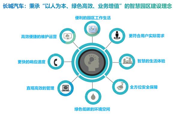 从数字园区看,长城汽车数字化园区项目基于数字孪生环境,实现园区资源与服务按需使用,通过数字孪生技术实现对园区全貌等可视化,最终实现绿色可持续发展园区。