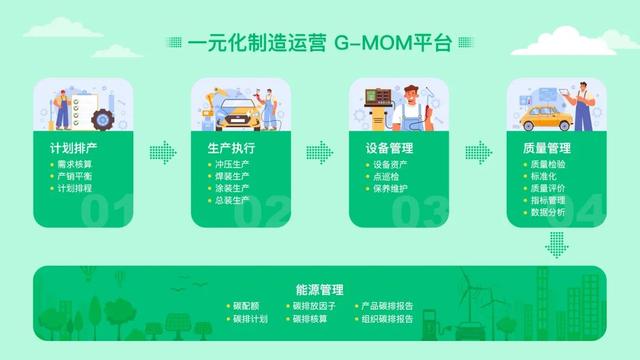 从数字工厂看,长城汽车建设一元化制造运营G-MOM平台,该平台覆盖计划排产、品质管理、生产执行、设备管理等业务过程,赋能工厂数字化管理和高效运营。