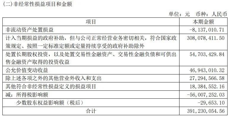 还有其他杂七杂八,所以非经常性损益项目和金额就3.91亿元了,然后扣非净利润所以负值不奇怪。