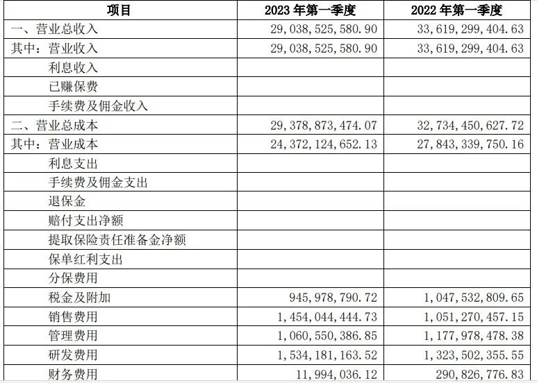 按照长城汽车2023年一季报的披露,一季度该司实现290.39亿元营收,2022年同期该数字为336亿元左右,同比下滑13.63%。
