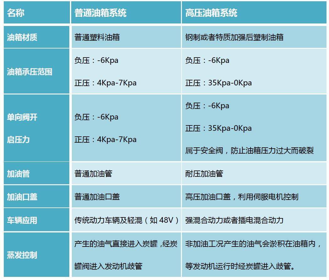 对于PHEV车辆,为了收集行驶过程中油箱内挥发油气,油箱都采用高压密闭油箱,此类油箱一般可以承受35-40kPa的蒸气压力。
