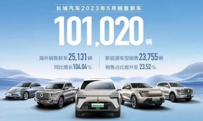 今年前5个月,长城汽车累计销售414,095台,同比微降0.78%,其中新能源车累计销售66,426台。