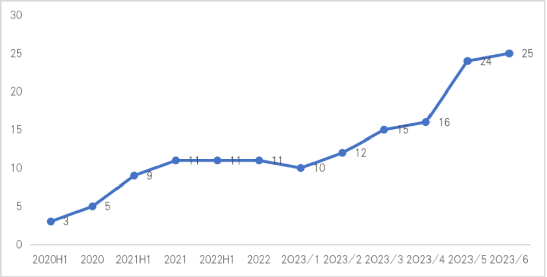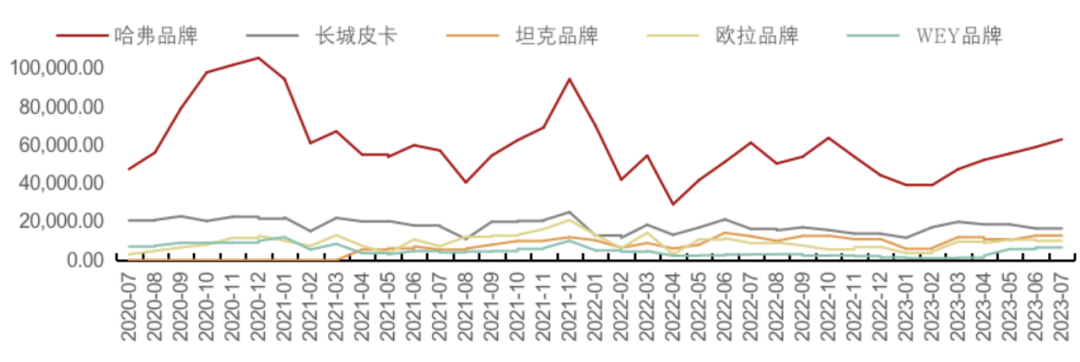 2023年上半年,长城汽车大力发力混动车型,陆续推出哈弗枭龙、哈弗枭龙MAX、魏牌蓝山等爆款车型,在多个大单品的带动下,长城新能源车的渗透率快速提升,6月渗透率达25.41%,新能源转型加速进行。
