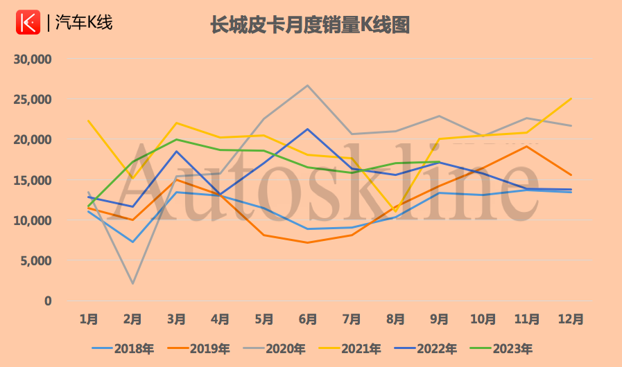 然而,从《汽车K线》统计的长城汽车近6年销量数据来看,长城皮卡不仅销量增速大幅回落,销量表现也不及2020年和2021年同期。