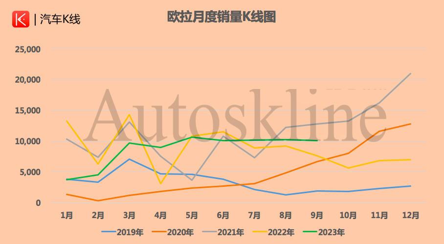 今年1-9月,欧拉累计销量为7.76万辆,同比下滑8.36%,月均销量仅为8,627辆。此外,这也是欧拉继2022年同期销量下滑后,再度出现同比下滑。