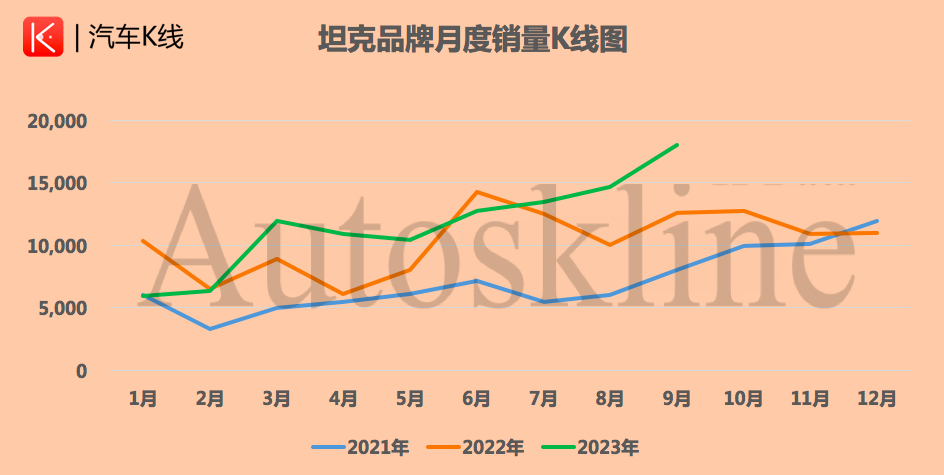 不过,坦克品牌表现并不稳定。数据显示,在今年前9个月中,坦克品牌有3个月出现负增长,1月销量更是出现了高达42.92%的负增长。