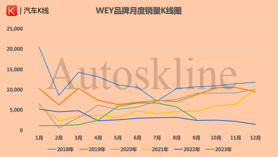 无独有偶。作为以魏建军姓氏命名的长城汽车高端品牌——WEY品牌,也在“金九”销售旺季出现销量环比下滑。