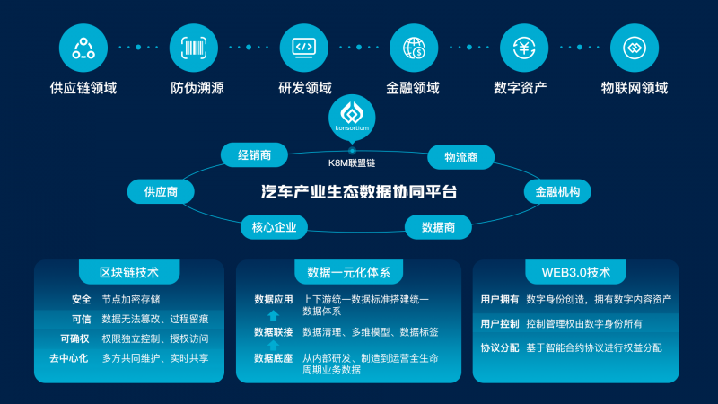 长城汽车K8m联盟链是基于区块链、隐私计算和联邦学习等web3.0技术构建的汽车产业互联网数据协同平台,应用在汽车整车与零部件研发领域、销售领域、供应链管理、存证取证、对账结算、溯源领域、数字资产等场景,是由长城汽车自主研发,构建企业数字化身份和形象,以数字化的身份进行汽车产业链上下游业务协同,为汽车行业伙伴构建了一个安全、互信、多方协同的开放平台。K8m联盟链专注服务于汽车行业,建设内容围绕汽车供应链透明化、业务自动化、可信存证,车辆防伪溯源等。