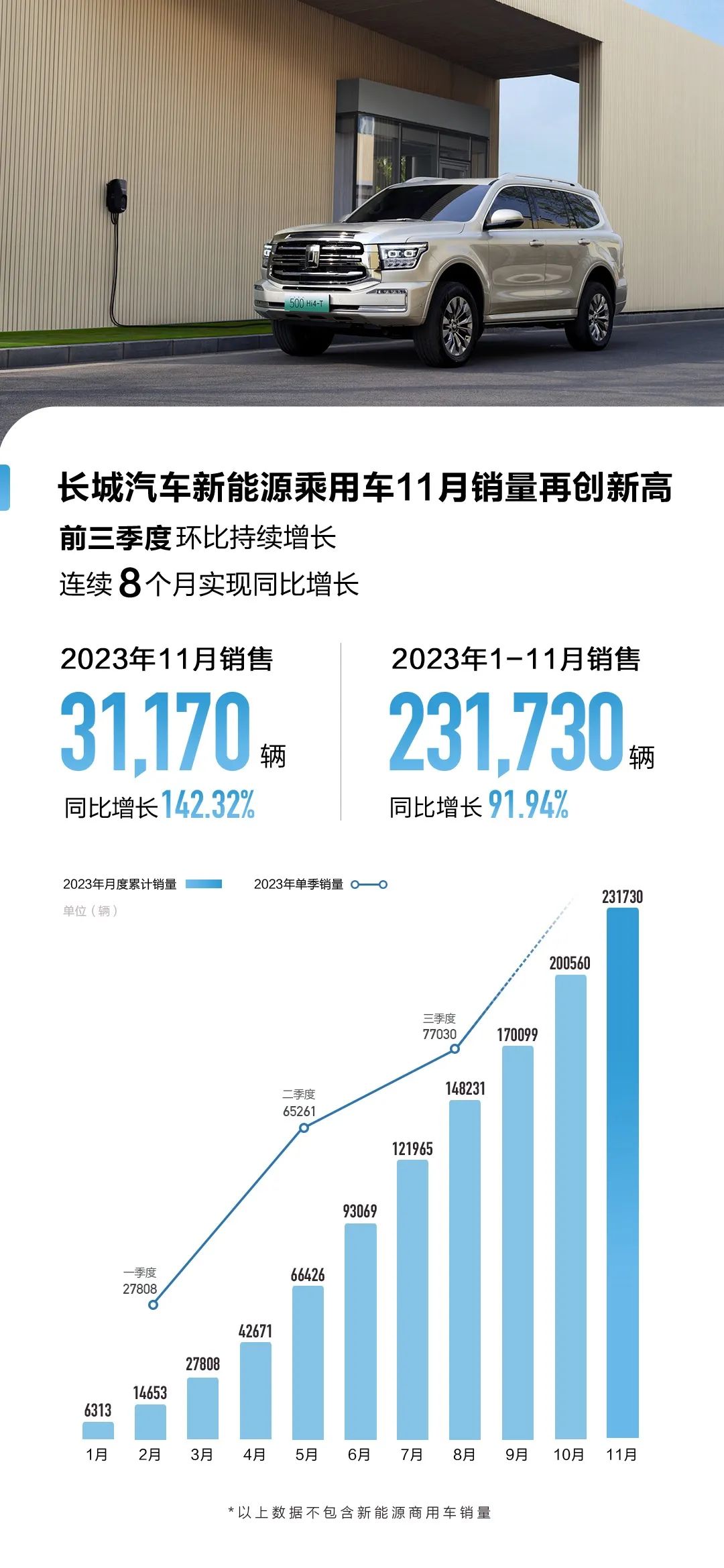 长城汽车11月新能源乘用车销量同比大增142.34% 创新高!