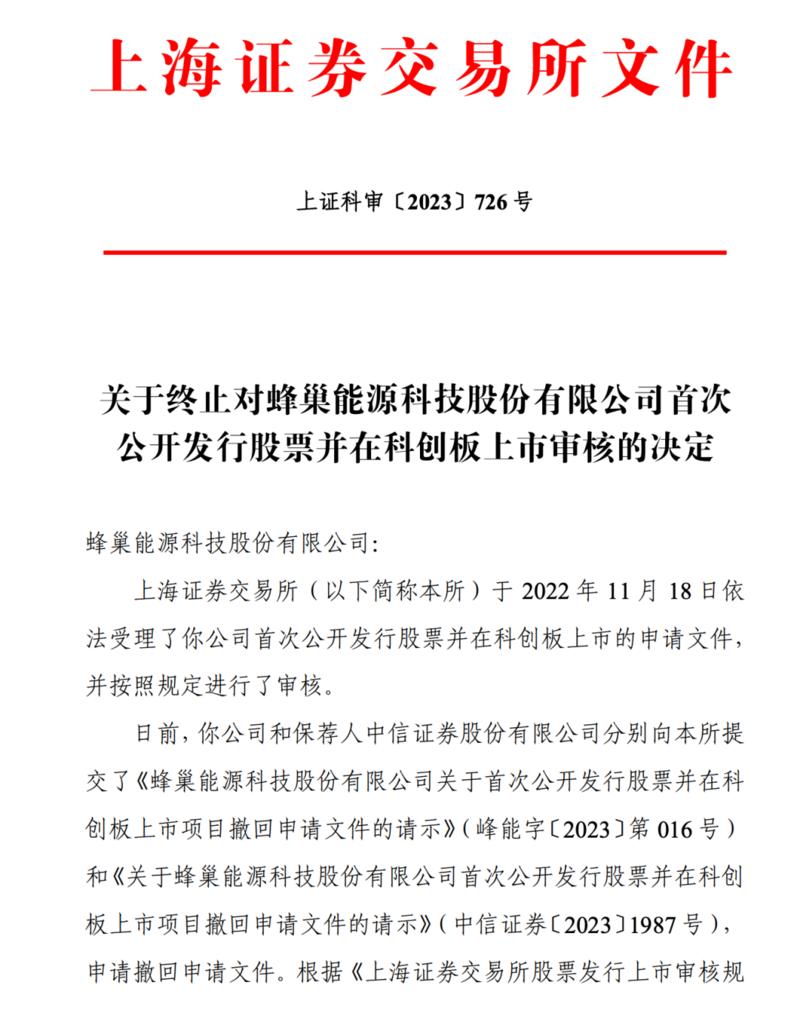 据上海证券交易所近日披露公告显示,蜂巢能源科技股份有限公司的上市申请状态变为“终止”。蜂巢能源对此回应称,公司综合考虑各种因素,以公司及公司股东的最大利益为重,决定撤回A股申请,并考虑启动其他融资方案。