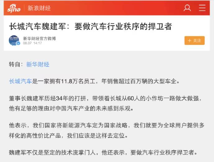 在这个时候,长城汽车和魏建军站出来,而且一次次公开表示,要做汽车行业秩序的捍卫者。我必须要给个赞!