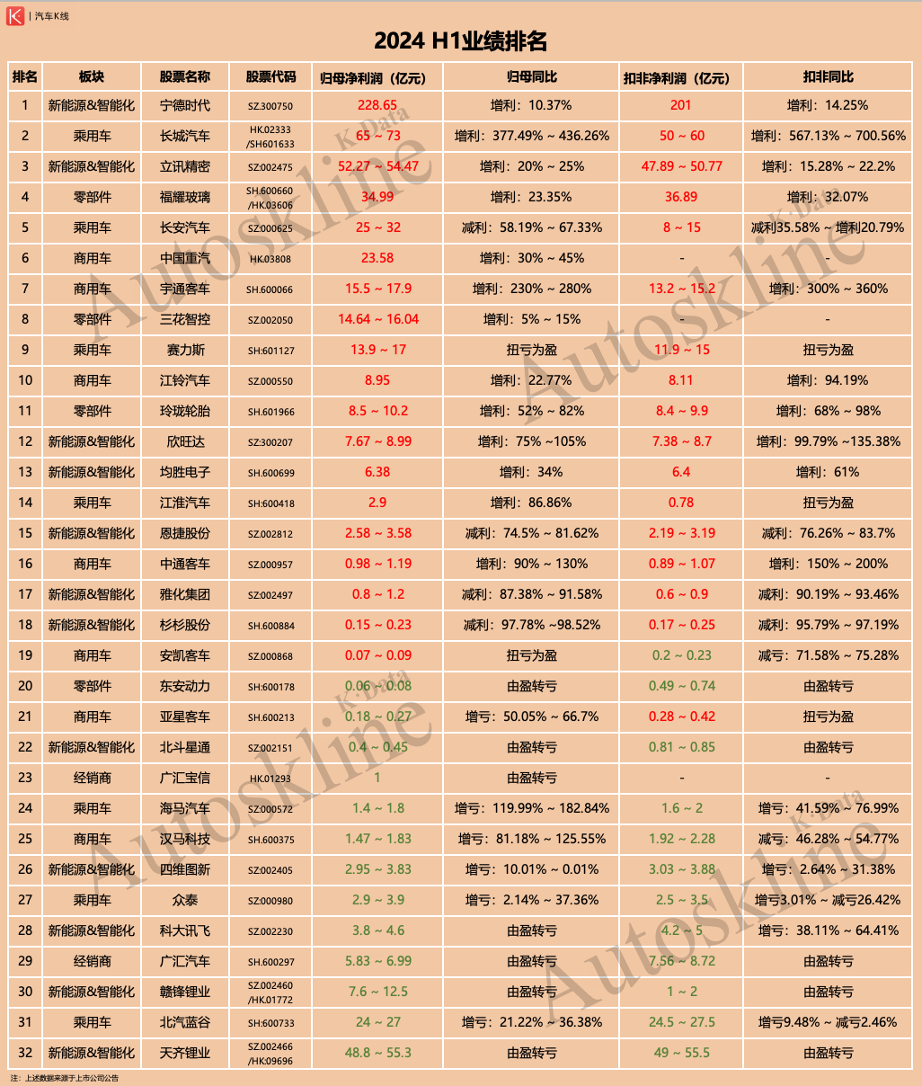 这样的盈利能力,在《汽车K线》统计的已发布半年经营情况的32家中国汽车业上市公司中,排名第2,仅次于宁德时代,是盈利能力最强的车企,比汽车央企的长安汽车,足足多出约40亿元。