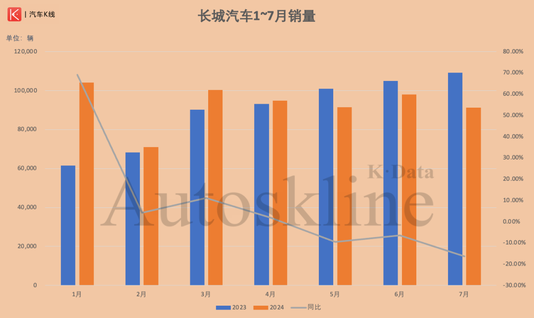 7月,长城皮卡销量同环比下滑均超20%,是今年除春节假期影响下的2月外,表现最差的单月。