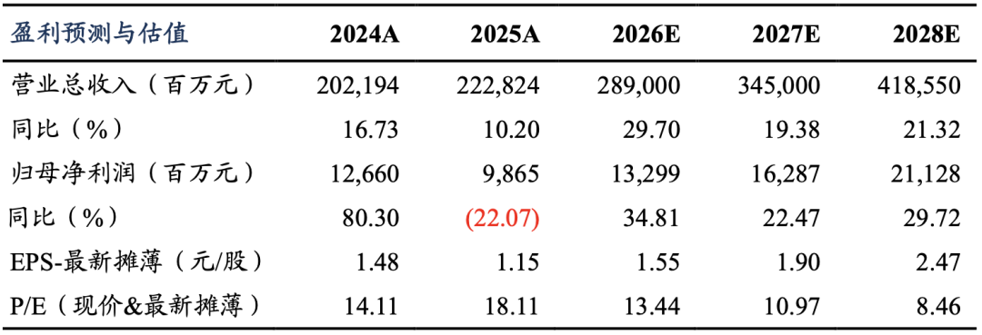 考虑市场竞争加剧同时上游原材料涨价影响,我们下修公司2026/2027年归母净利润预期至133/163亿元(原为174/221亿元),我们预期公司2028年归母净利润为211亿元,对应PE为13/11/8倍。由于魏牌/欧拉在2026年迎来较强新品周期,坦克泛越野版本陆续上市拓展目标人群,我们仍维持“买入”评级。